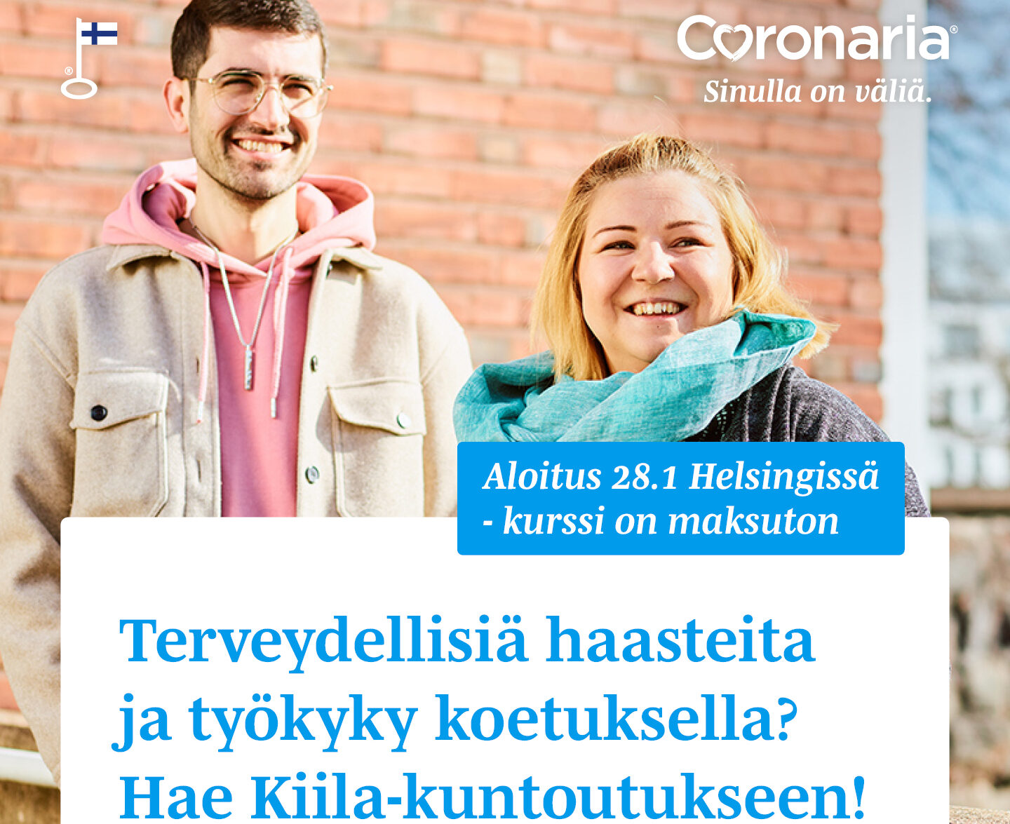 Onko sinulla terveydellisiä haasteita ja työkyky koetuksella? Kaipaatko voimia työelämään ja vireämpää arkea? Hae mukaan maksuttomalle Kiila-kurssille!